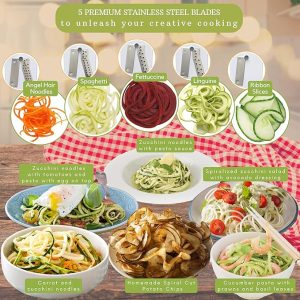 + Cash on deliveryStrongest-Heaviest Spiral Slicer, Best Veggie Pasta Spaghetti Maker for Low Carb/Paleo/Gluten-Free/Vegan Meals, With Extra Blade Caddy
